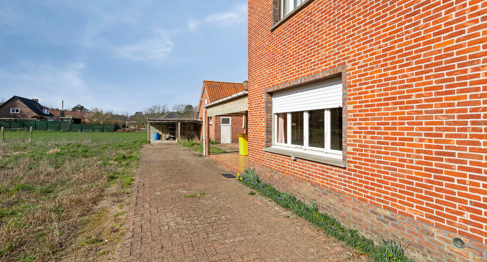 Het mooie open perceel heeft achteraan zicht op een weide en beschikt achteraan de tuin over een bakstenen tuinhuis.